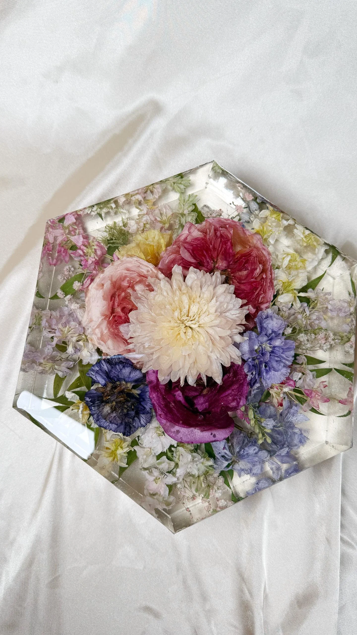 Transform your flowers into custom, resin-bound keepsakes. Perfect for creating lasting home decor pieces like bookends, trays, or blocks.